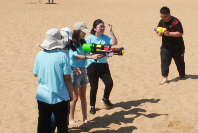 最后就是我們的放松時刻啦!~前面兩個活動取得優(yōu)異成績的同學(xué)們比較占優(yōu)勢啦~水槍水量足!壓力大!哈哈哈哈(捂臉)。。。